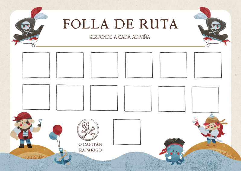 Na nosa folla de ruta, iremos anotando a solución a cada adiviña, ata completar as 13 do percorrido.